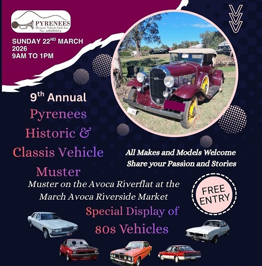 Community Interviews Pyrenees Historical Vehicle Club Muster production goldfieldsfm 15 hours ago We chat to Bruce & Jenny from the Pyrenees Historic Vehicle Club about their upcoming muster. For more information about the Pyrenees Historic Vehicle Club checkout this website…